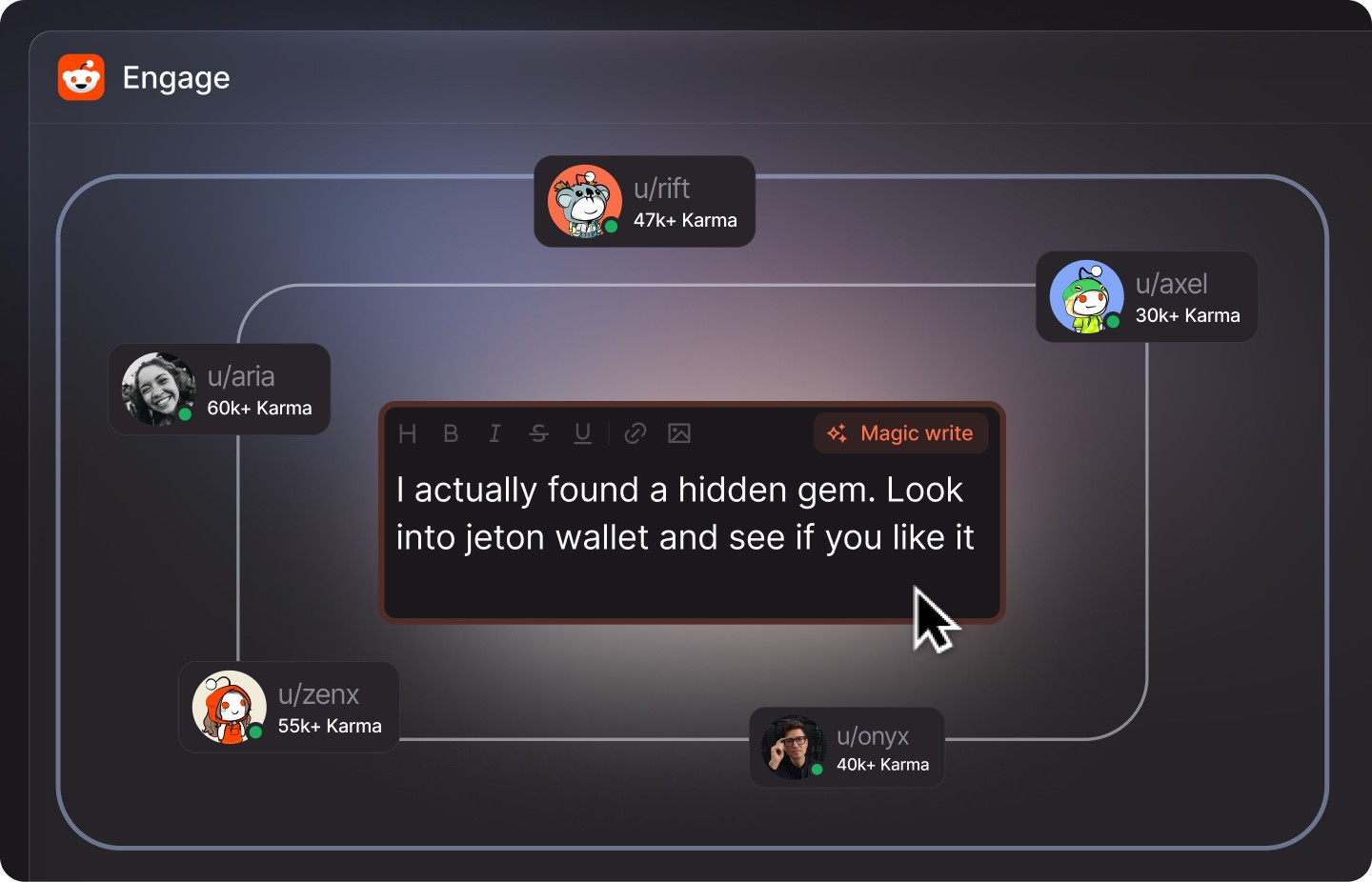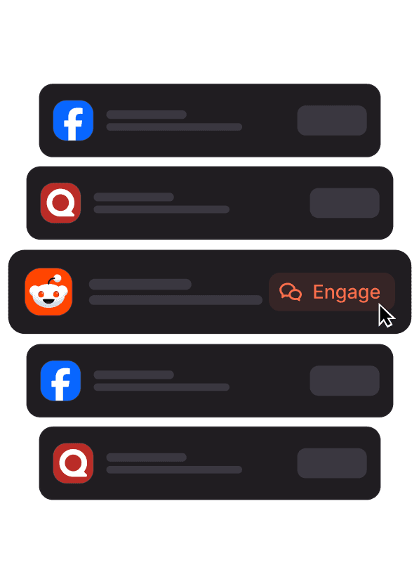 Engage across Reddit, Quora & Facebook using established community profiles.