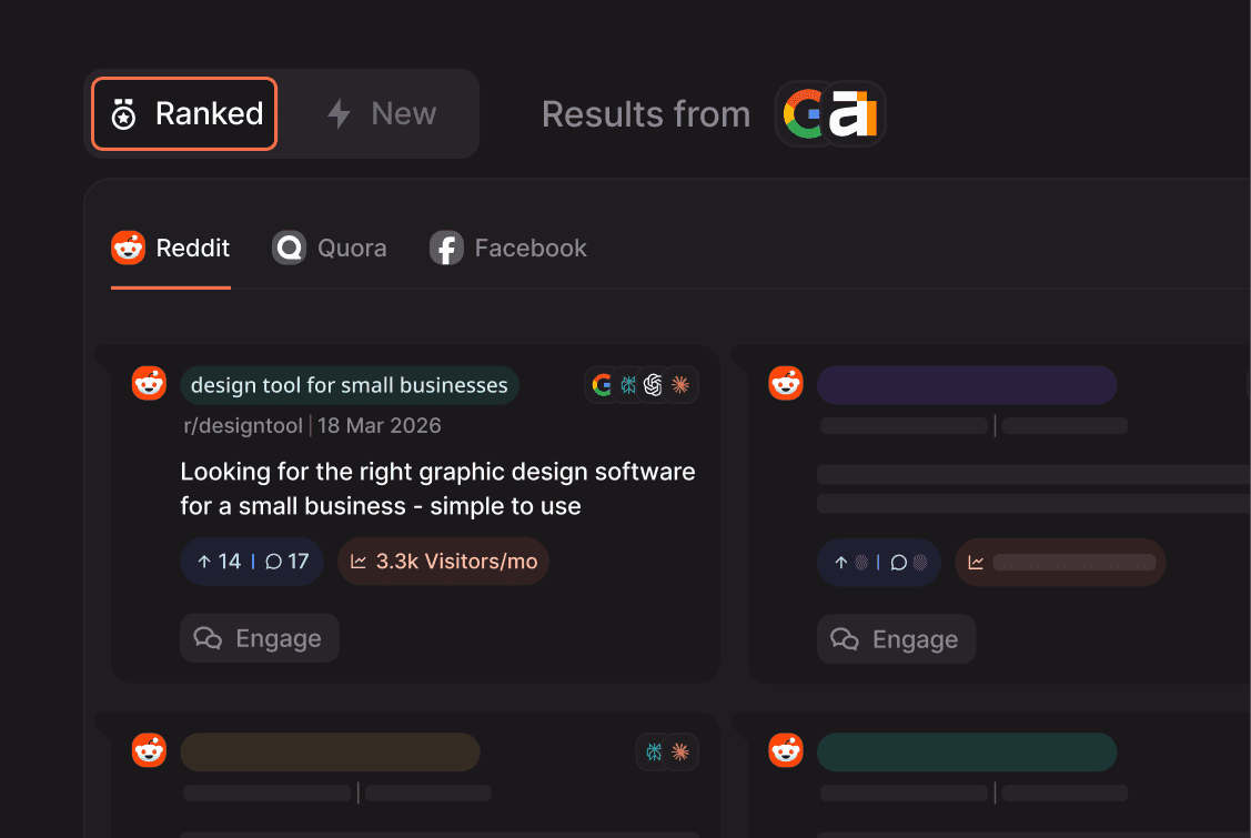 Surface threads across Reddit, Quora, Wikipedia, and blog sites — filtered by relevance and AI citation potential.